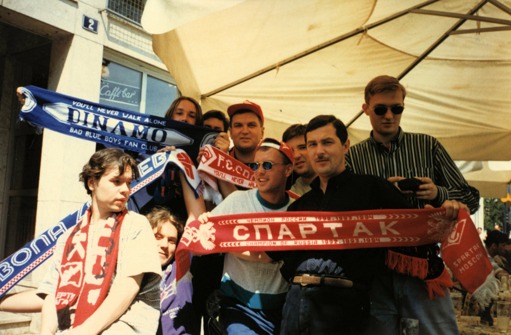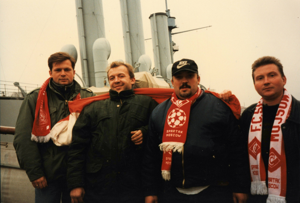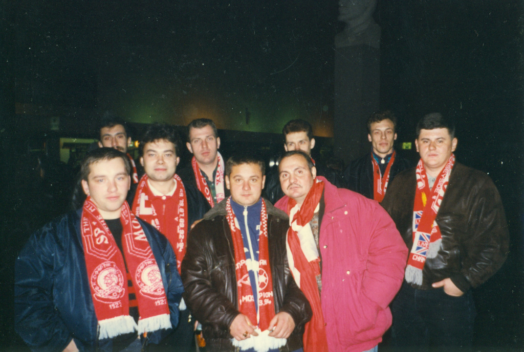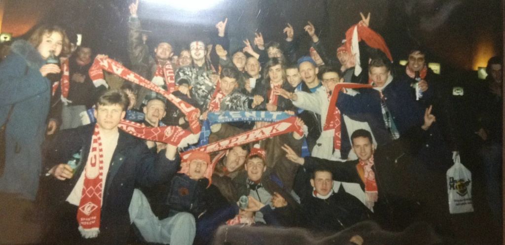 Осенью 1993 года, предположительно при содействии того же Алексея "Сапога", увидел свет первый и очень малый тираж шарфов Спартак Москва ещё со старым названием турнира "Кубок европейских чемпионов" (начиная с розыгрыша 1992/93г. и далее - "Лига чемпионов УЕФА").