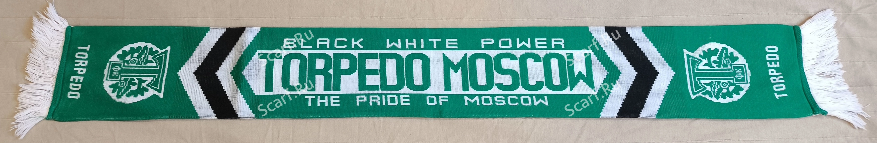 Шарф заказывал известный фанат Торпедо Василий Петраков в Англии. На втором фото шарф без бахромы - часть шарфов Торпедо англичане сделали без нее.
