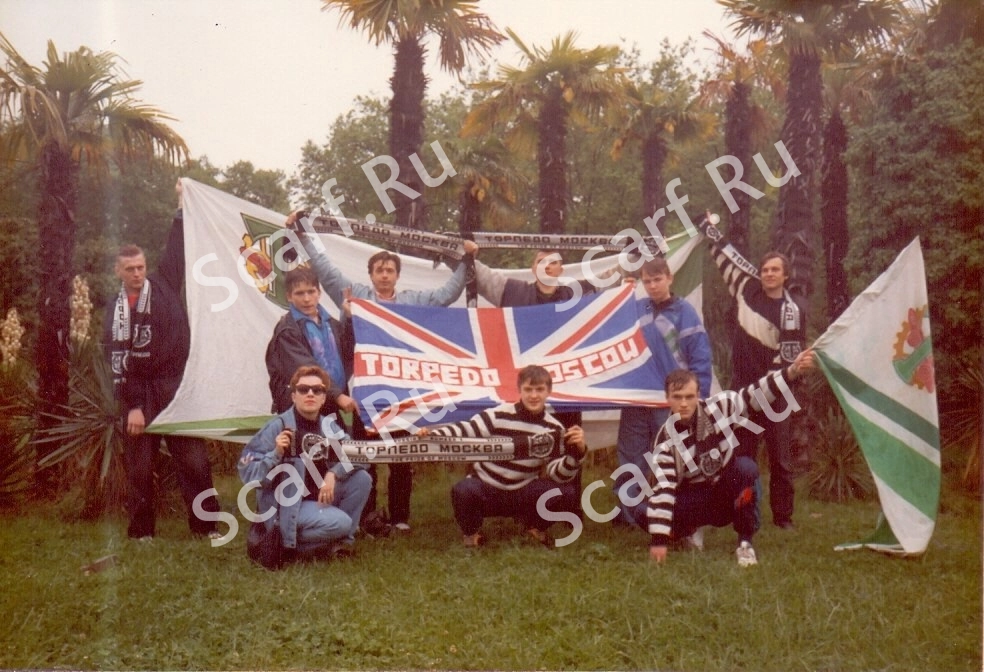Шарф делал известный фанат Торпедо Василий Петраков в Санкт-Петербурге летом 1993 года. Считается первой вязаной розой "Торпедо", выпущенной серьёзным тиражом. Первый тираж (100 штук) был полностью продан на игре Кубка УЕФА "Торпедо" - "Маккаби" (Хайфа). Запад-5 был на этом матче целиком в этих розах.